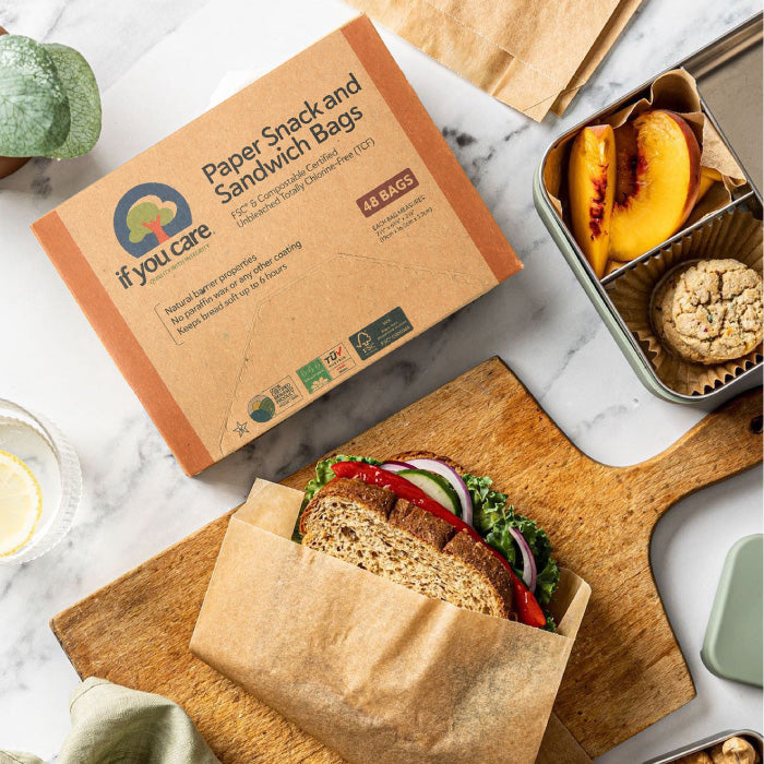 この紙袋は学校のランチにぴったり!フルーツ、チーズ、クラッカー、サンドイッチ…何を入れても使い勝手が良いです。すでに何箱もリピート購入していますが、「If You Care」は配送も早く、いつもきれいな状態で届くので安心です